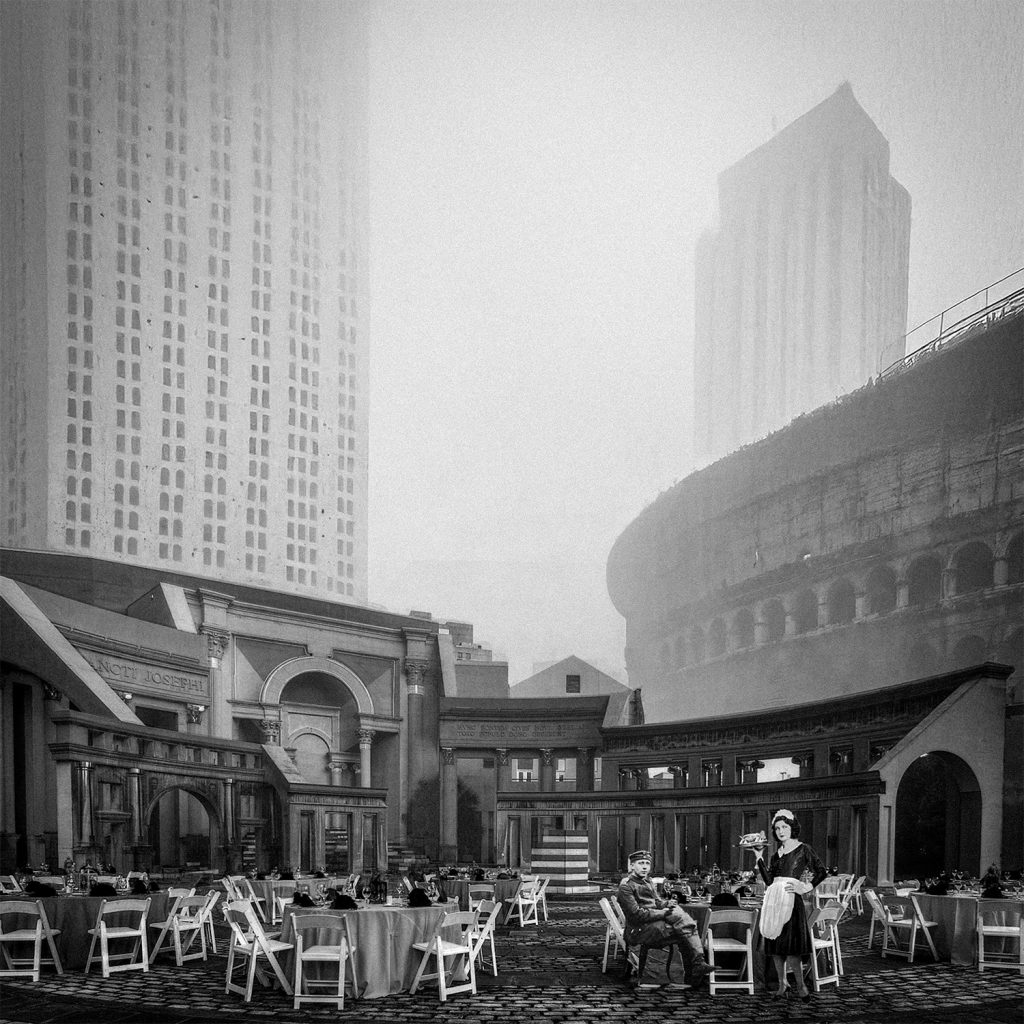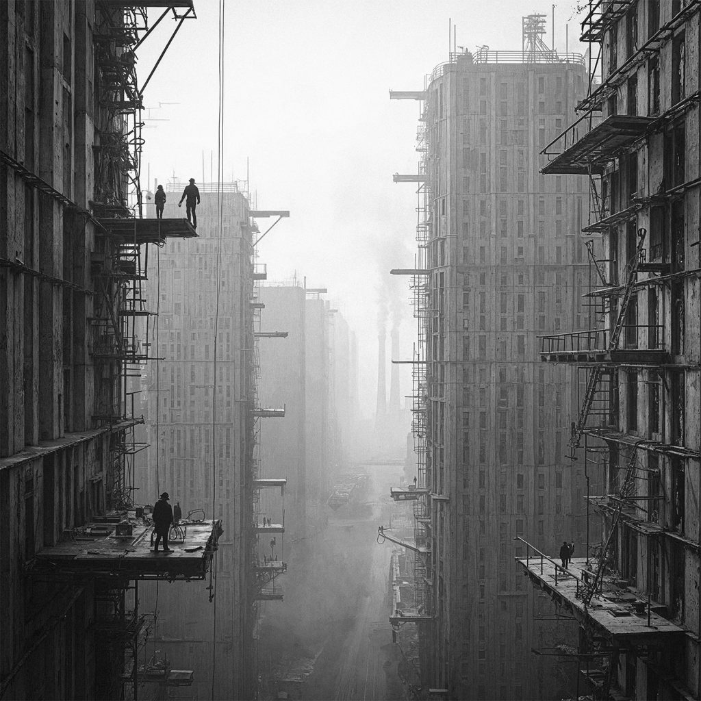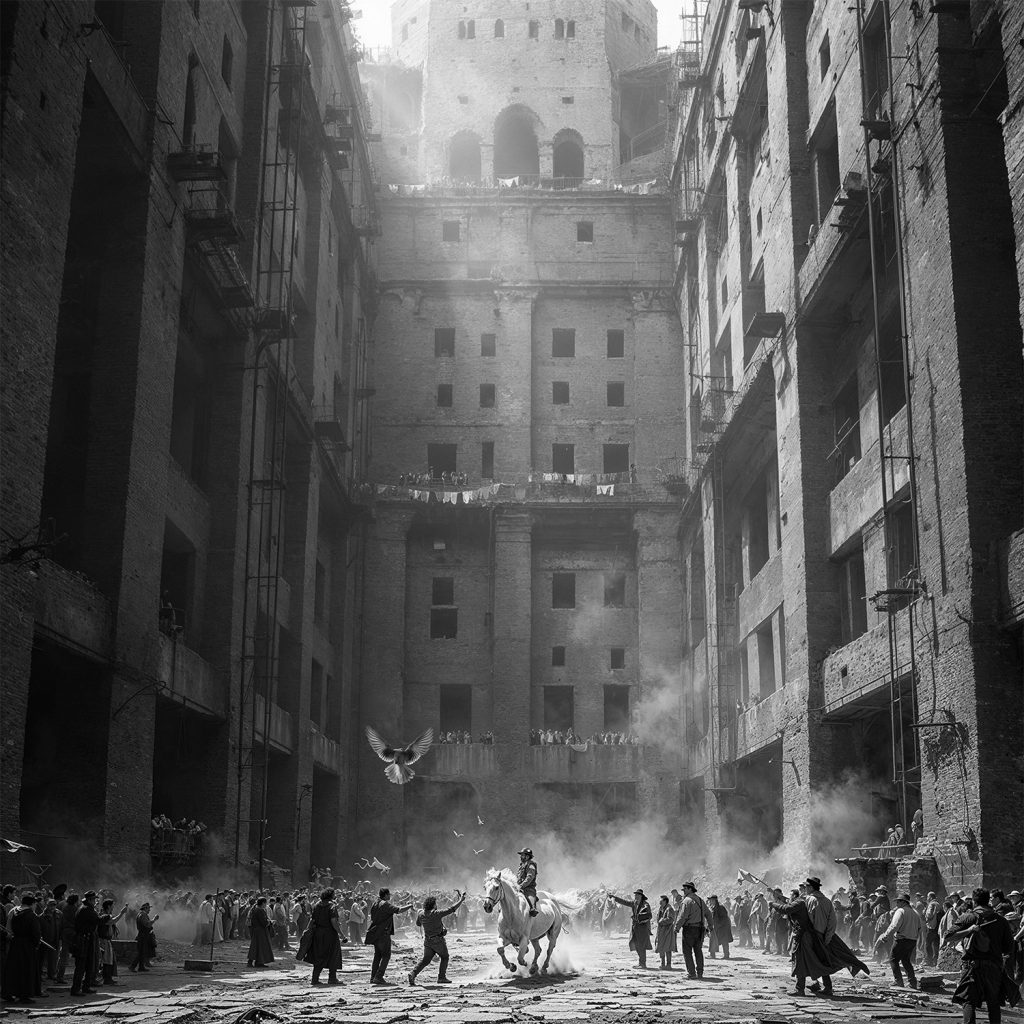 Raissa soll als eine Stadt überlagerter Realitäten konzipiert werden. Die Grundidee ist ein zweischichtiger Ansatz, der die „traurige Stadt“ und die „glückliche Stadt“ aus Calvinos Vision simultan existieren lässt. Die „traurige Stadt“ manifestiert sich in der Hauptstruktur: dichte Stadtblöcke mit engen Gassen, schwere Steinbauten und eine pragmatische, funktionale Ästhetik. Diese primäre Struktur spiegelt die Alltäglichkeit des Lebens, seine Routinen und Beschwerlichkeiten wider. Die „glückliche Stadt“ ist kein separates Gebilde, sondern ein Netzwerk aus Räumen und Momenten, das sich in die bestehende Struktur einwebt. Unerwartete Innenhöfe, kleine Plätze, Balkone, die visuelle Verbindungen schaffen – sie ermöglichen flüchtige Begegnungen und intime Erfahrungen im öffentlichen Raum. Auch die Materialität reflektiert diese Dualität: Beständiger, schwerer Stein, dunkles Holz und Ziegel stehen für die „traurige Stadt“, während leichtere, mobile Materialien – etwa Gerüststangen, hölzerne Klappstühle oder Leinen mit heller Wäsche – die „glückliche Stadt“ verkörpern. Ein zentrales Element ist die architektonische Umsetzung des „unsichtbaren Fadens“, der Menschen für einen Augenblick miteinander verbindet. Dieser Faden wird durch gezielte Sichtachsen, verbindende Räume und temporäre Architekturelemente sichtbar gemacht. Fenster, Treppen, Pergolen schaffen unerwartete Begegnungen. Bewegliche Sonnensegel erzeugen wechselnde Lichtmuster; Marktbuden verwandeln den städtischen Raum temporär und öffnen ihn für neue Formen der Interaktion.